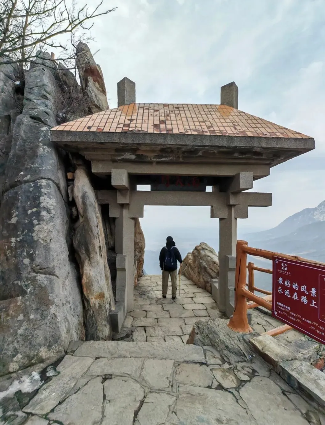打卡完毕清凉峰刻字石,我们沿公路向三皇寨景区方向走,凭身份证进入景区后,开始登好汉坡。