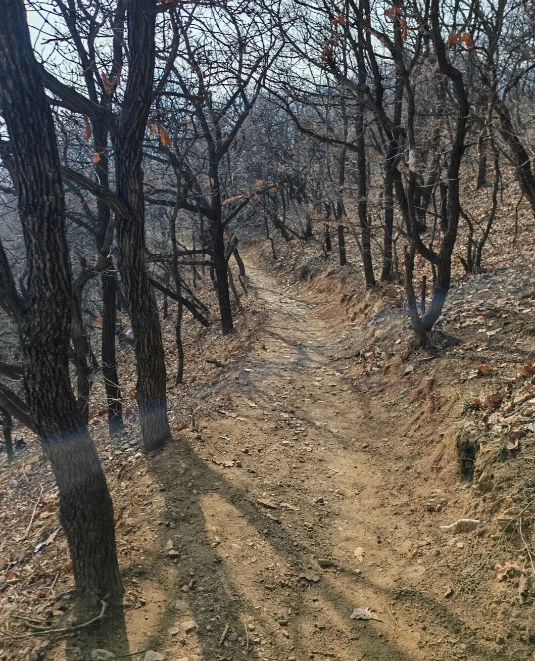 苇圆沟位于少室寺附近,我们上午8点钟到达停车场,登上停车场尽头的小土坡,沿水泥路走向田间小道,穿过小道就是进山野道。