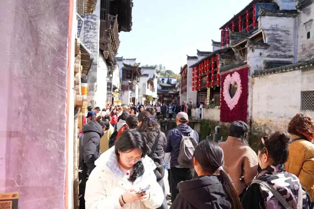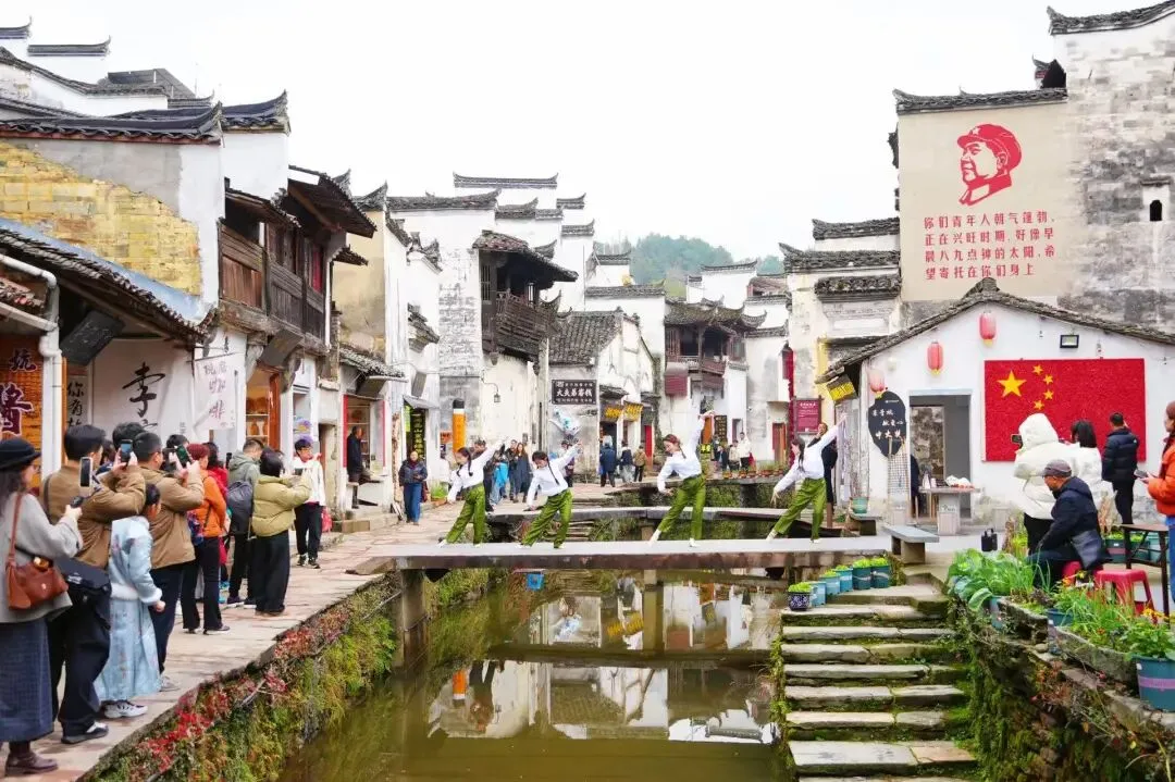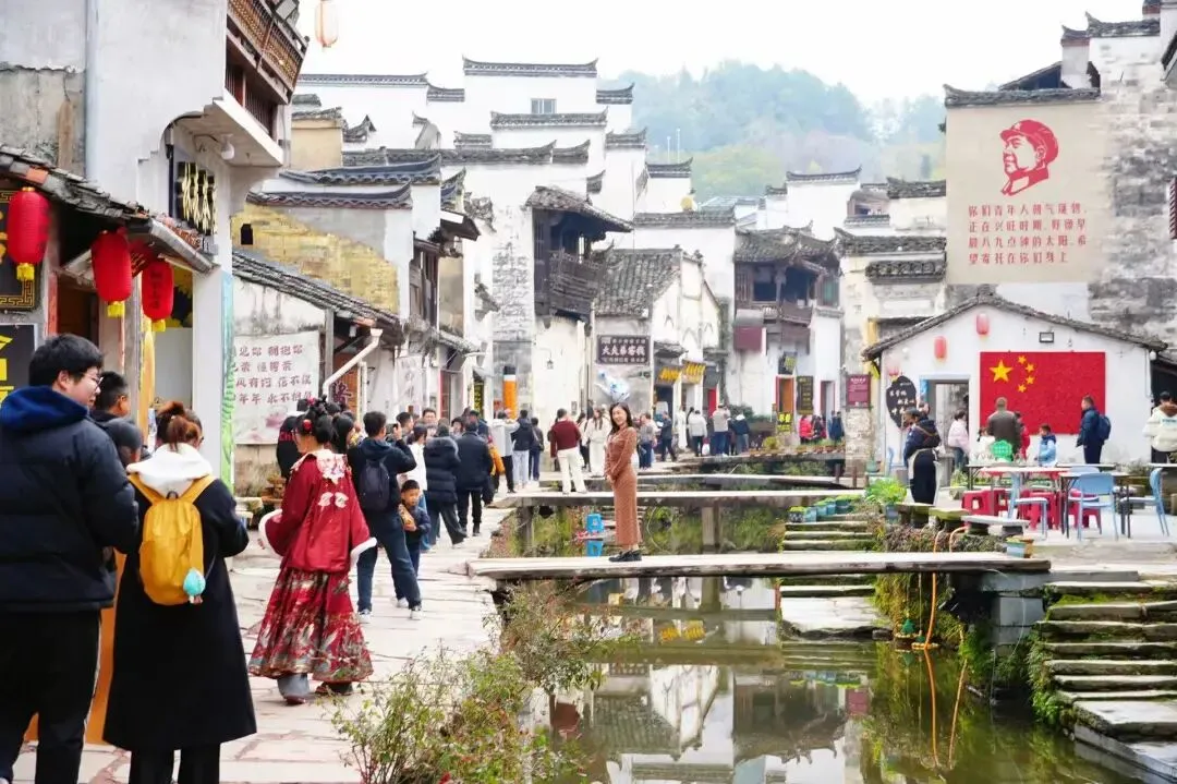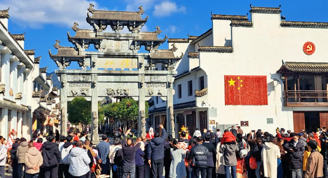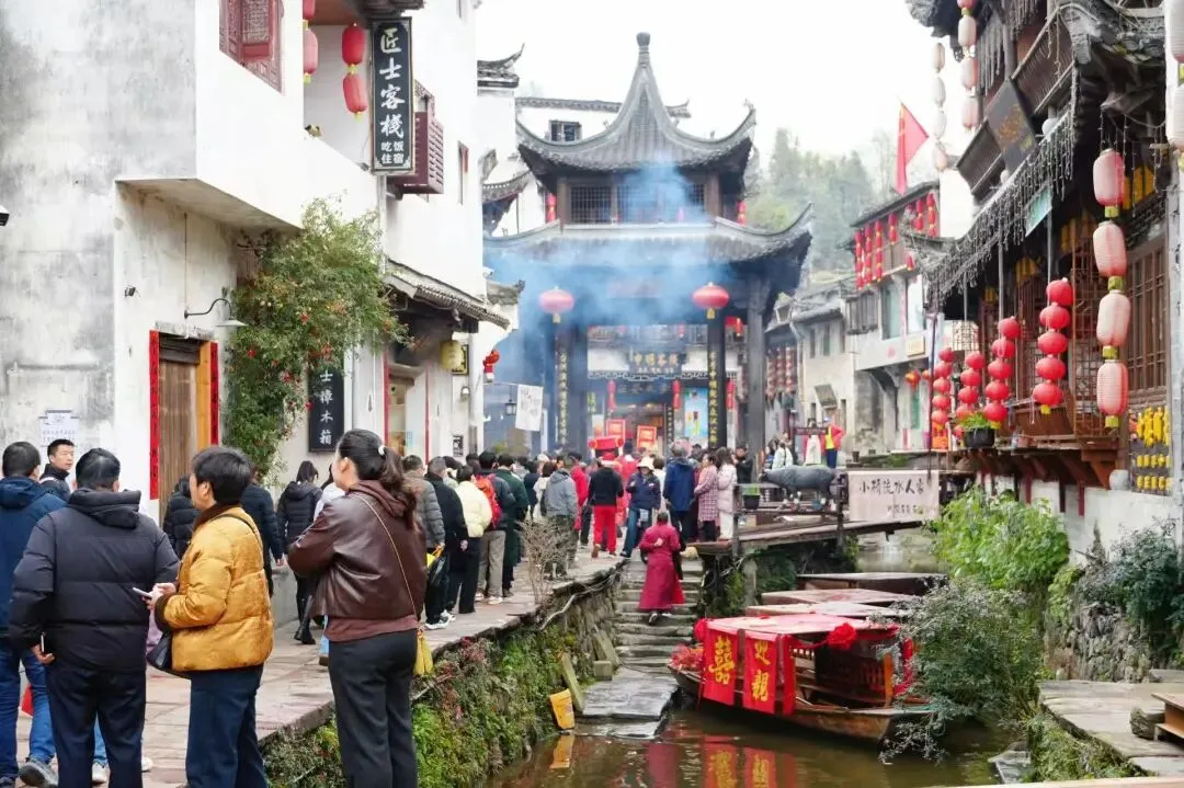 街巷间游人往来不绝,流水声、欢笑声、乡音软语交织成曲。古巷深处,烟火与古韵共生,把徽州古村的新年意趣,藏进每一步行走里。