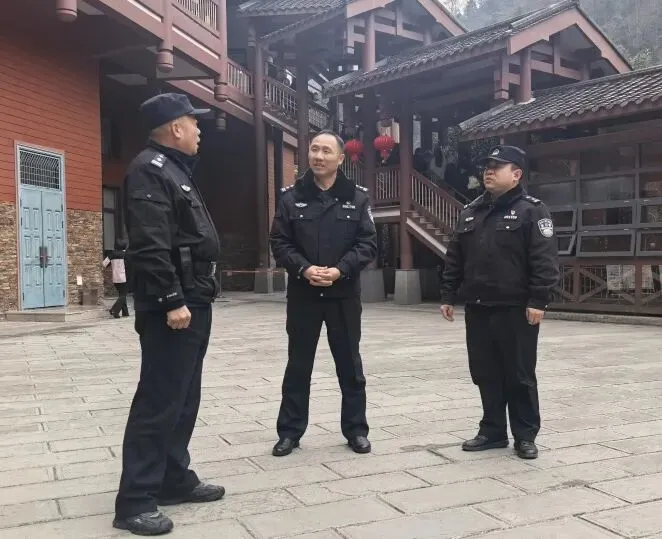 2月18日,张家界市公安局武陵源分局党委副书记、政委邢建平到核心景区、派出所督导调研春节假期安保工作,看望慰问执勤民辅警,治安大队大队长胡辉参加调研。