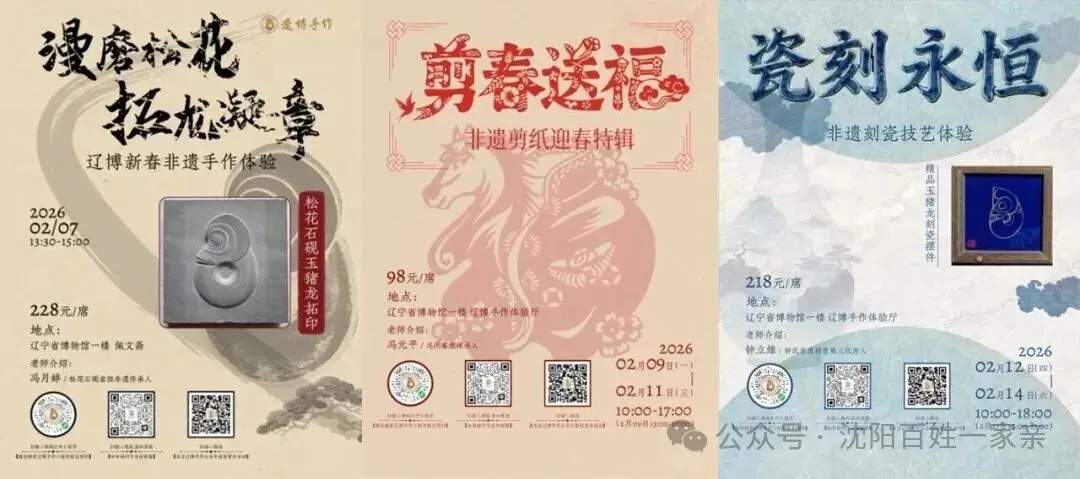 🏮亮点:辽博特邀“朱炳仁铜”,李氏掐纸等12位非遗传承人及手工艺人,共同呈现“踏雪迎春,策马呈祥”主题非遗市集。现场既可以选购铜雕、刺绣、木版年画等精美手作,还可以动手体验非遗技艺,在亲手创造中感受匠心传承。