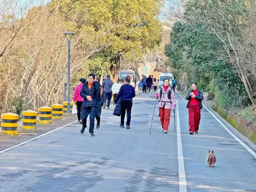 惠山森林公园北大门开放后,登山步道更便捷、观景视野更开阔,徒步健身的市民络绎不绝。