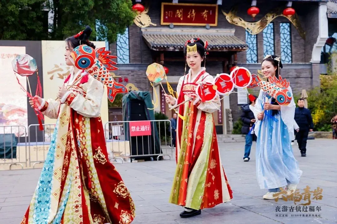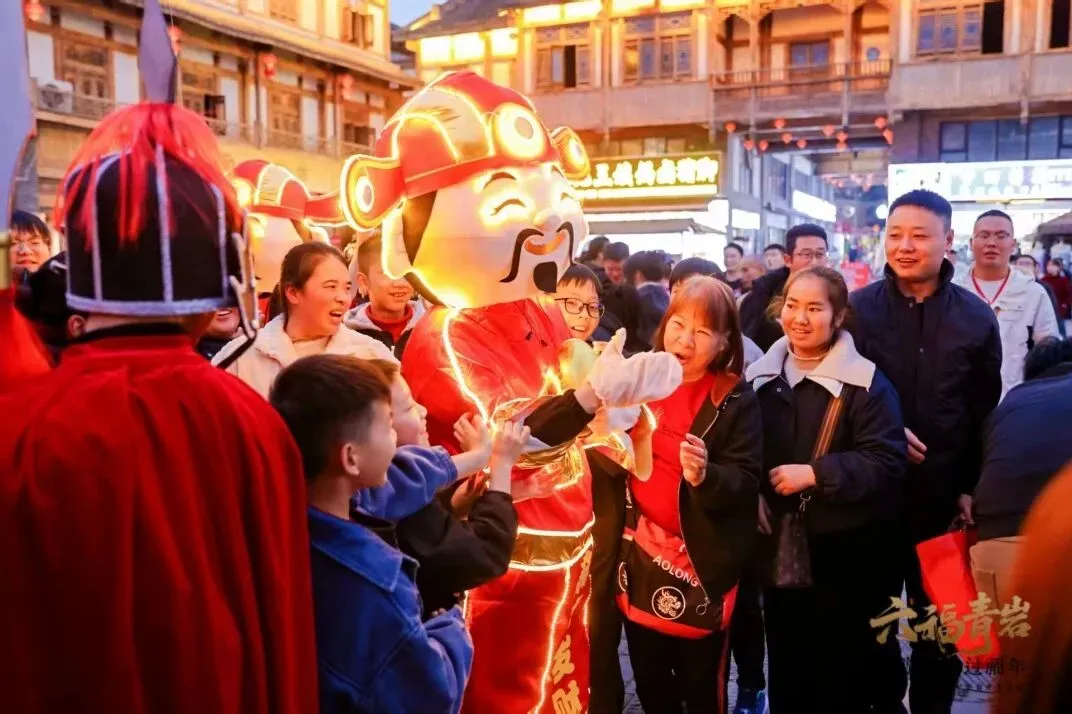 青岩古镇则带你“穿越”回大明。从初一至初七,大明迎宾礼、荧光舞狮、古装巡游精彩不断,更有飞天仙女散花,非遗喷火等有趣活动。不仅如此,你还可以体验“战青岩”长征沉浸式体验项目,在游玩中感受红色文化。超多丰富活动让这座古老的古镇焕发出年轻的活力。