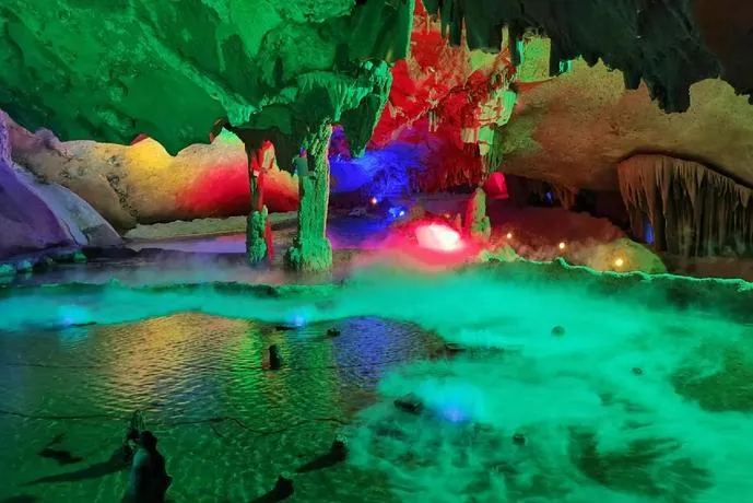 溶洞景点全国到处都是,孽龙洞乍一看也没什么特别的,但这个洞的奇妙之处在于它把地下河、钟乳石、暗湖三种景观融合在了一个相对紧凑的空间里,你不用走很远就能体验到完全不同的地质奇观,而且冬天来有个好处,洞内温度常年保持在18度左右,外面冷得要命,你一进洞立刻就暖和了,这种温差制造出一种很奇妙的感觉,像是从一个世界穿越到了另一个世界。