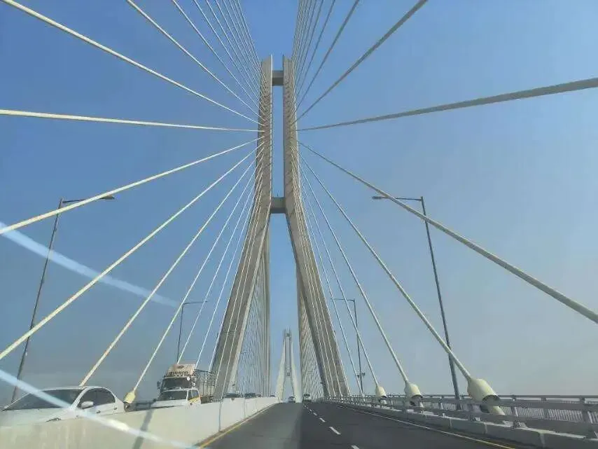 作为缅甸目前在建桥梁中通航净空最高的斜拉桥,该桥精心设计的引桥和匝道坡度平缓,行车体验舒适。通车后车流量巨大,一度出现步行过桥的人群,相关部门目前已临时禁止行人上桥以确保安全。