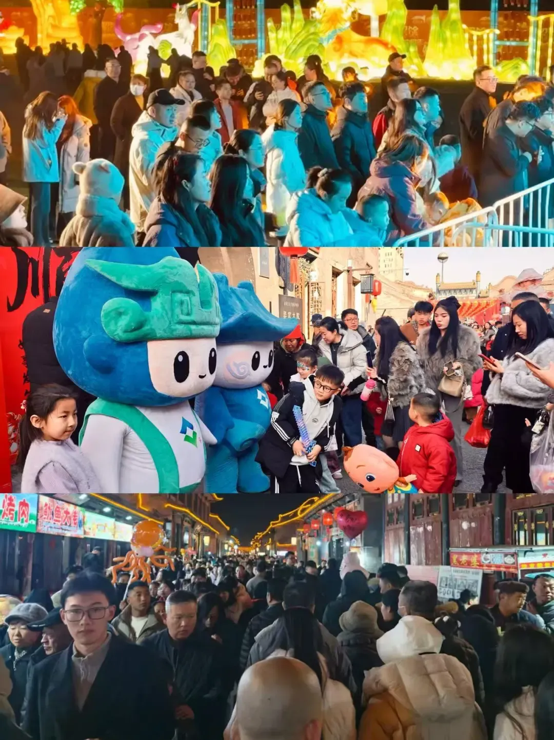 游客说 “我妈拉着我挤了三圈,就为了拍张九曲灯会的全景图,手机都快被挤飞了!”;本地人说 “平时逛西大街能数清地砖缝,今天连转身都要跟陌生人说‘借过’,这才是过年该有的样子啊!”;街边商贩说 “从街头吃到街尾,炸油糕、碗托、糖画全排队,我们笑到合不拢嘴,这才是老城该有的烟火气嘛!”