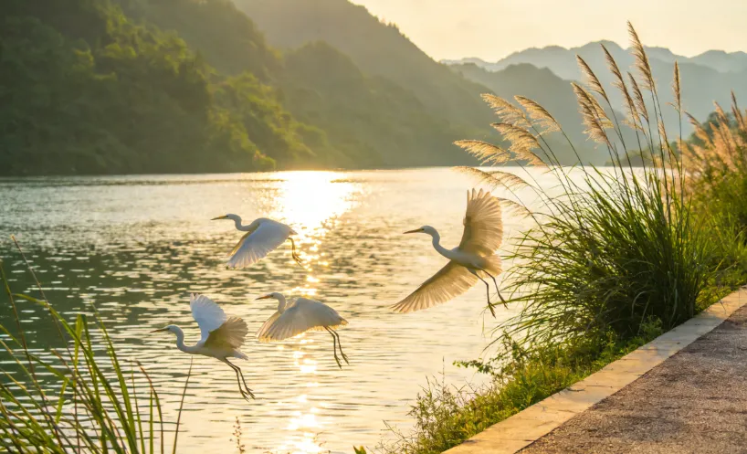 阿蓬江国家湿地公园位于濯水景区周边,是一个以阿蓬江为主体的湿地生态系统。这里水草丰茂,鸟类繁多,是众多候鸟的栖息地。