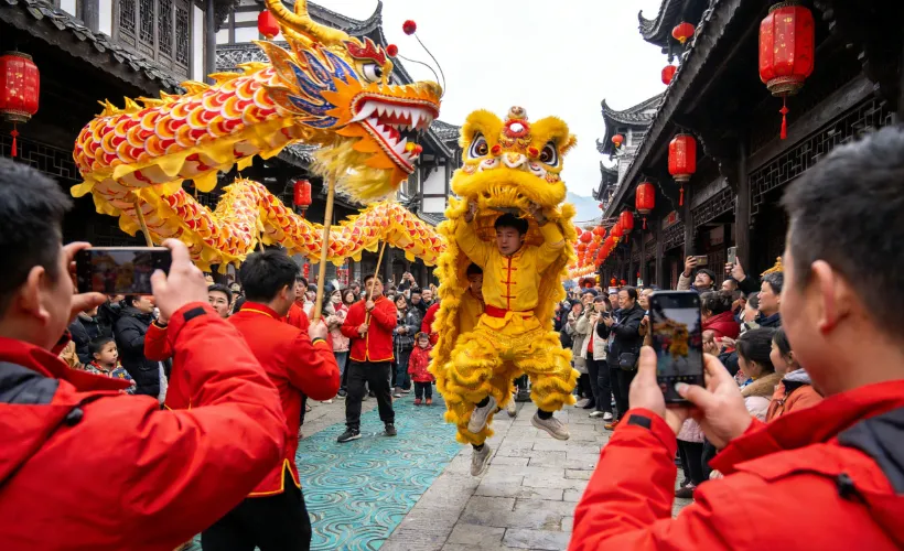 在濯水古镇,经常会举办各种丰富多彩的民俗活动,让游客深入体验当地的传统文化。比如春节期间的舞龙舞狮表演,舞龙者手持龙灯,上下翻腾,舞狮者则模仿狮子的各种动作,活灵活现,热闹非凡。