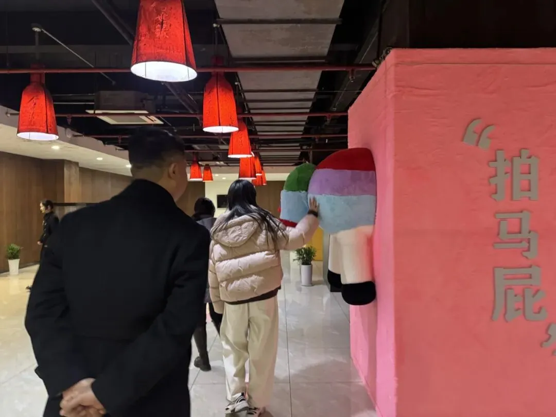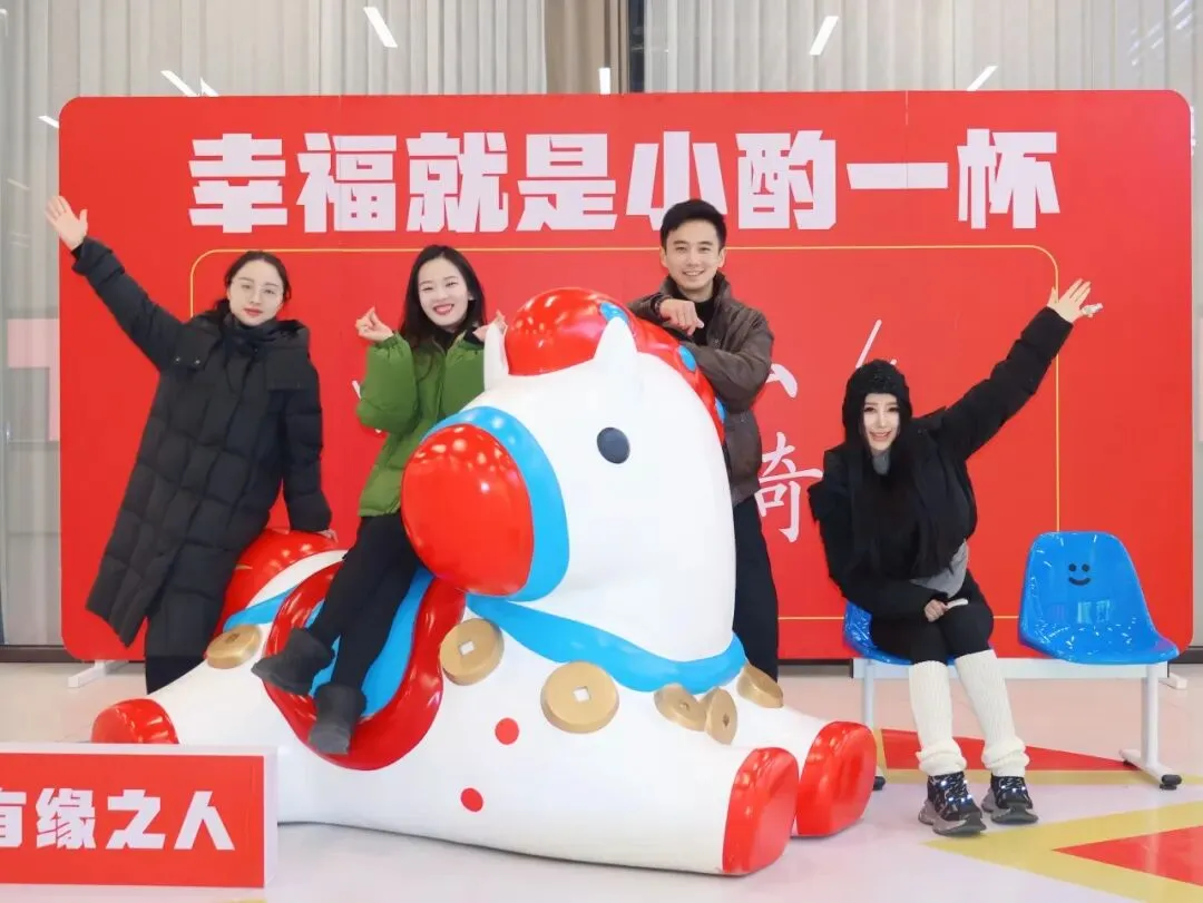 白金酒库的打卡点创意十足,“拍马屁”互动装置充满趣味。大家纷纷在行大运年历前驻足,许下马年心愿。酒逢知己相框将氛围感拉满,大家和家人朋友同框,定格团圆时刻。