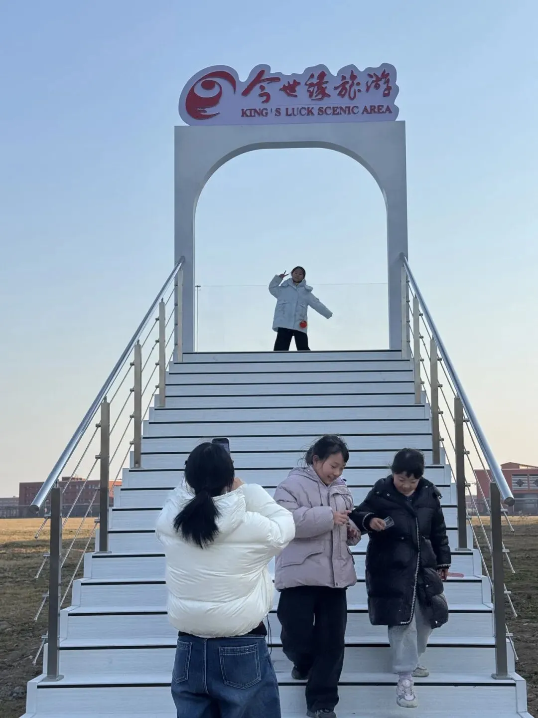 从游客中心大门口的明信片相框开始,大家就排起了长长的队伍,争相与景区同框,定格马年第一份美好。