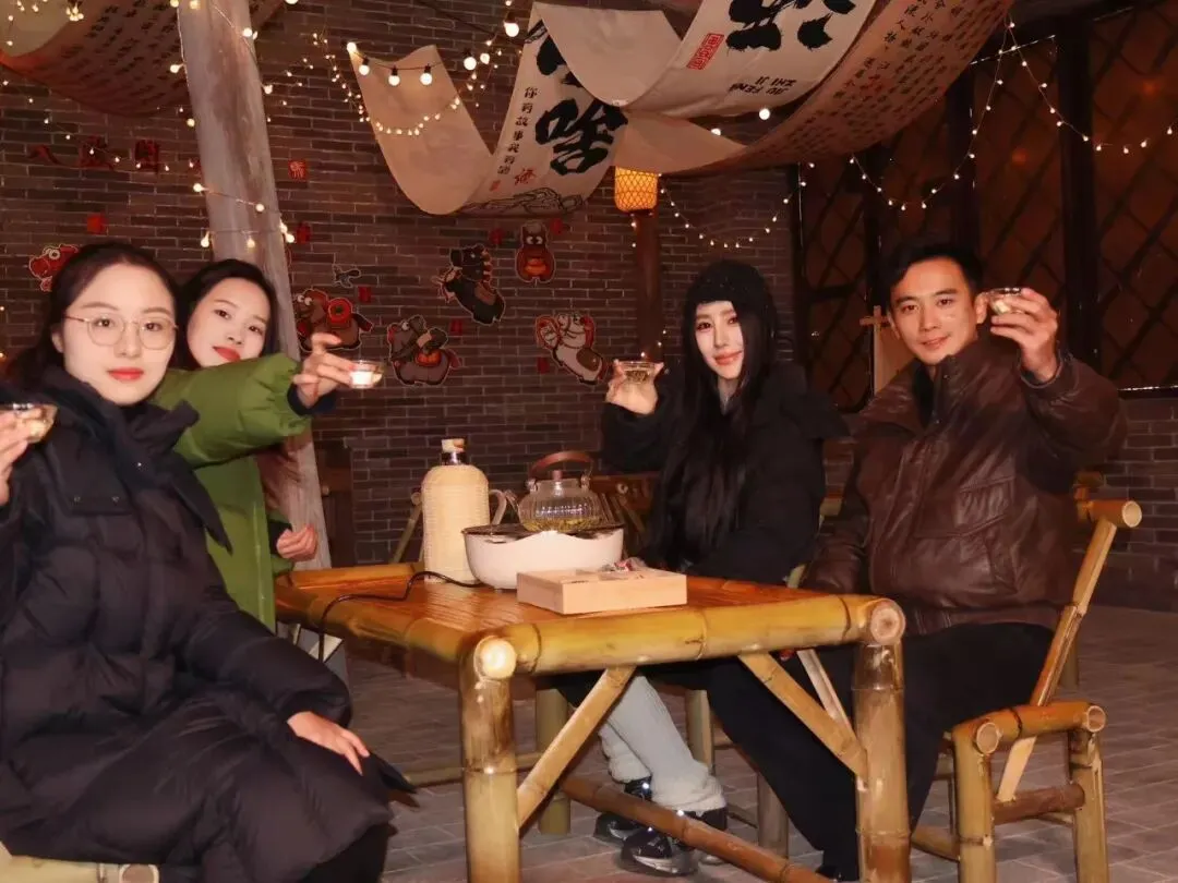 高沟雅集的福缘茶舍生意红火,成为游客们的“避风港”与打卡地。三五好友围坐在一起,围炉煮茶、闲话家常,暖意融融间,既能享受片刻的静谧,又能拍出氛围感满满的古风美照。在茶香氤氲中,大家感受马年新春的松弛与美好。