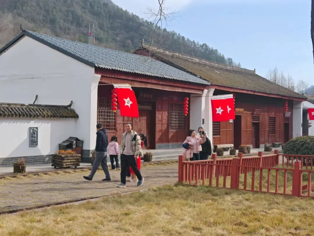 景区内红灯高挂、春联映红,红军栈道、红军桥、水磨坊、民俗馆等点位游人络绎不绝。家庭出游、亲子研学、近郊休闲成为主流,大家漫步青山溪水间,打卡红色地标,聆听革命故事,体验乡村年俗,用镜头定格新春美好,在自然与人文交融中度过惬意的新年时光。
