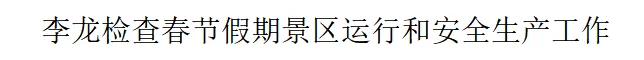 李龙强调,春节假期人流密集,是对安全生产与服务保障工作的集中检验。生态城各相关部门及景区要紧紧围绕打造“国家级旅游度假区”目标,深入贯彻落实习近平总书记关于“以文化人、以文惠民、以文润城、以文兴业”的重要指示要求,不断丰富高品质文旅产品供给,扎实做好各项服务,全力保障人民群众度过一个平安、欢乐、祥和的假期。