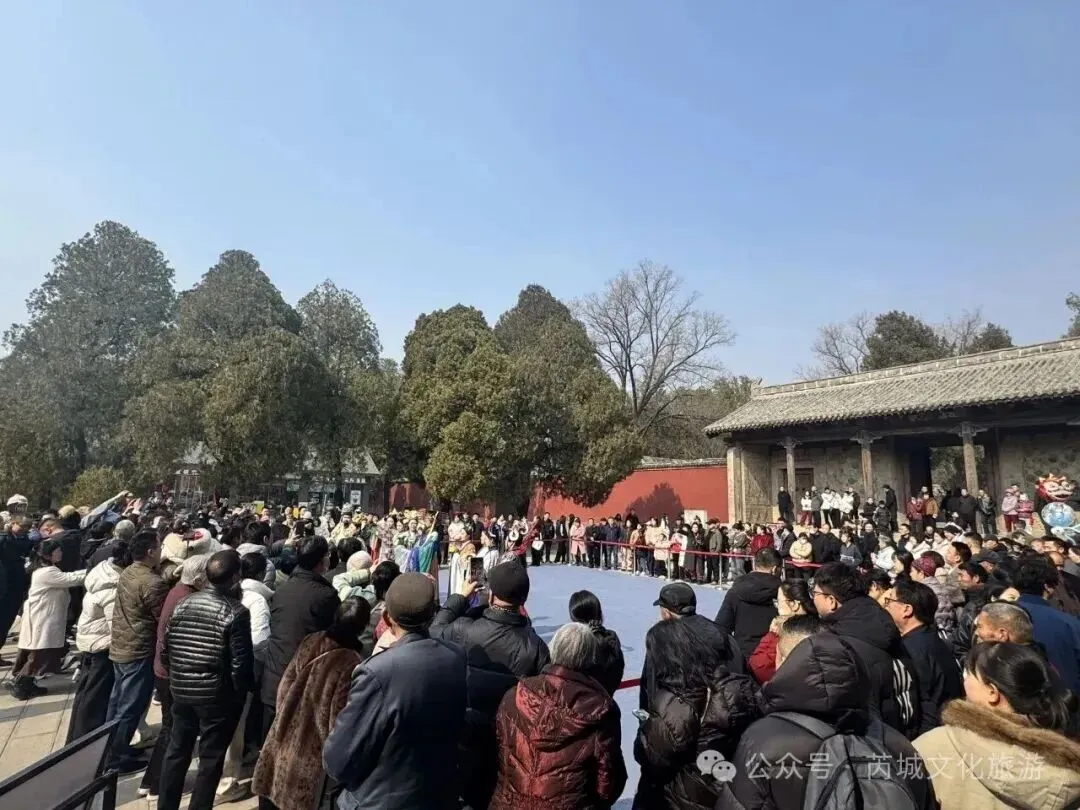 大年初一,永乐宫景区人气爆棚!入口排起长龙,大家都想一睹元代壁画的风采。