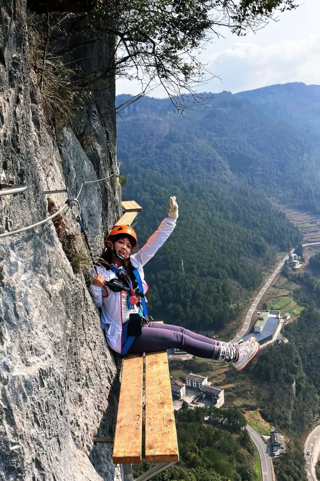 栈道上不时传来游客们的尖叫声和欢呼声