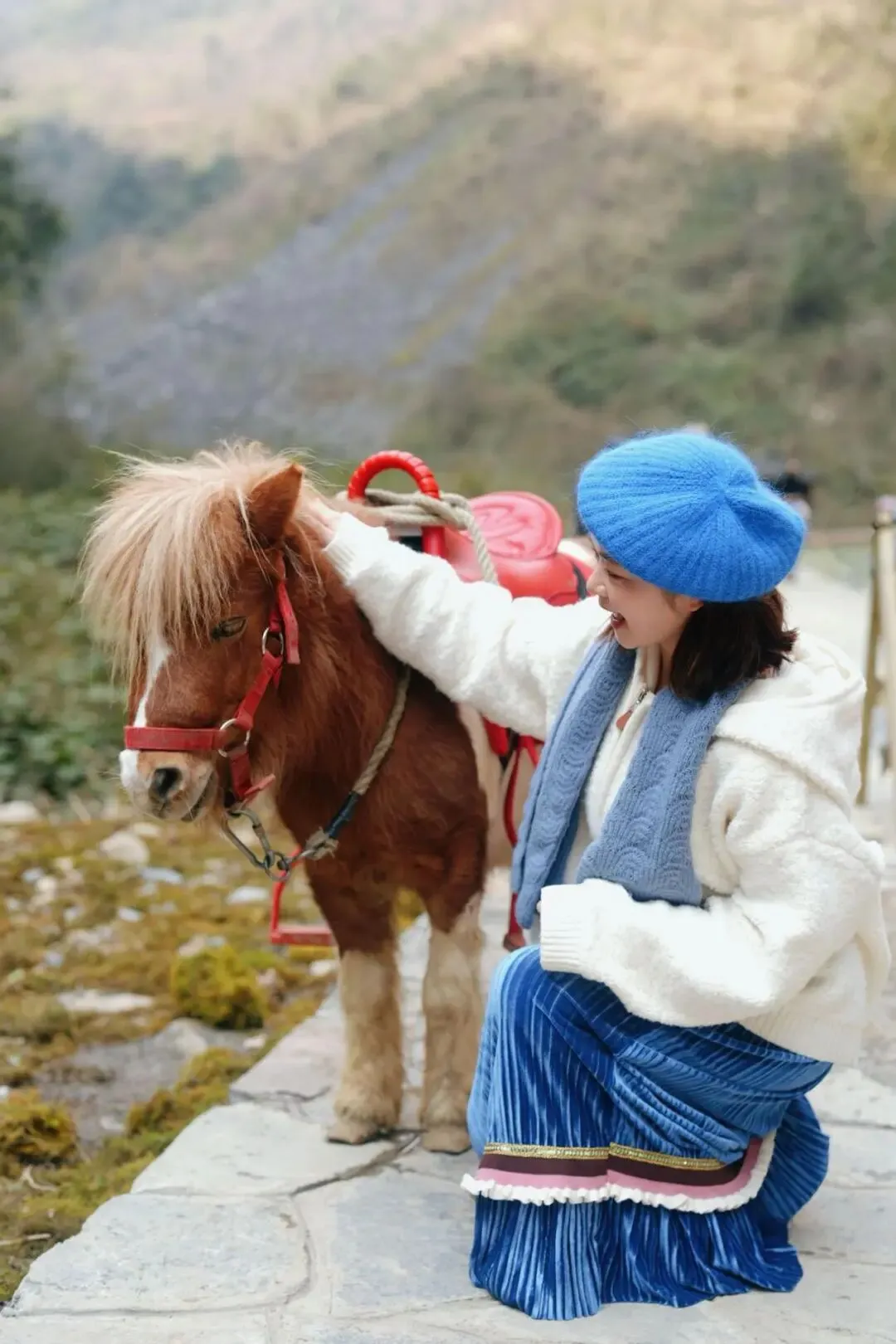 不少游客交替体验矮马与大马骑行