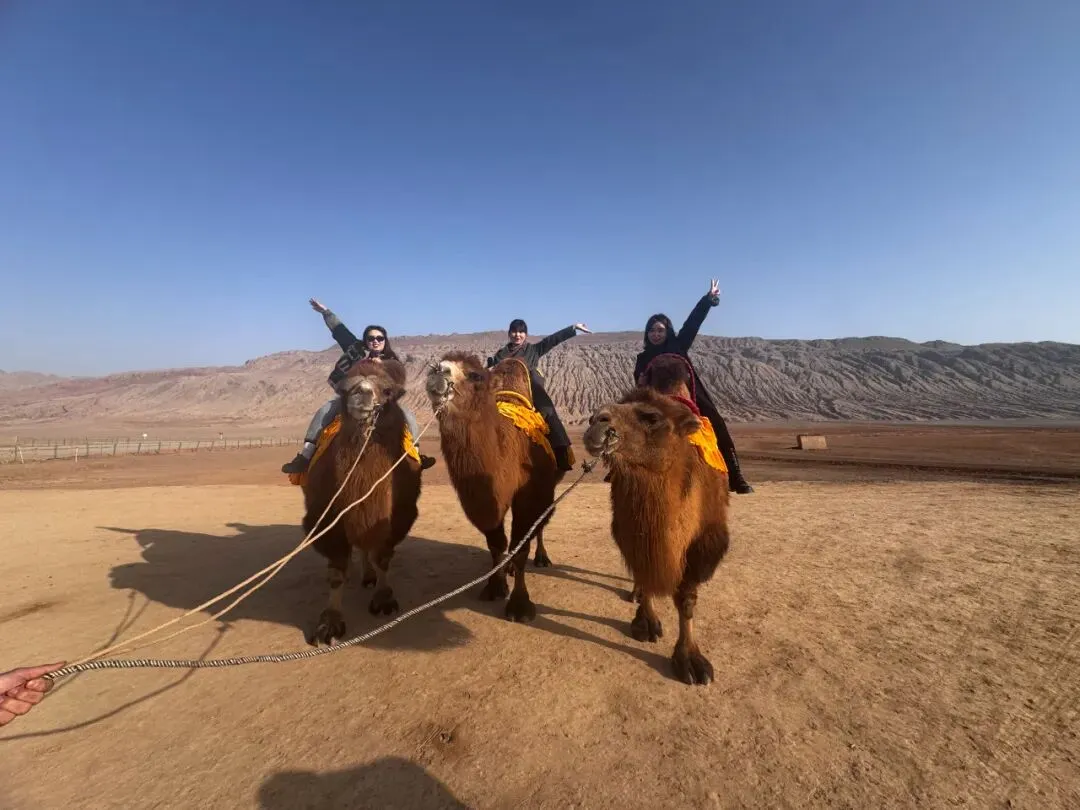 景区内游人如织、热闹非凡。来自全国各地的游客漫步其间,有的驻足观赏火焰山奇绝壮美的自然景观,有的与“孙悟空”“铁扇公主”等经典西游文化IP形象打卡合影。骆驼骑行等特色体验项目备受青睐,景区处处洋溢着游客的欢声笑语。