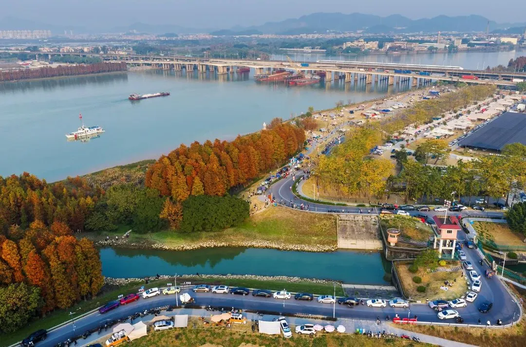 火爆全网的乌洲水闸紧邻湿地公园。春节期间,落羽杉林宛如童话世界里的“森林秘境”,随手一拍都是大片。夜幕降临,乌洲时光夜市热闹开市,烟火气蔓延整个江边!