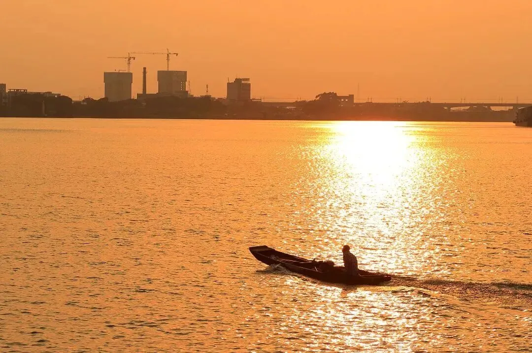 站在堤围上,一侧是渔船傍岸的绝美江景,一侧是2800亩宛如翡翠的桑基鱼塘。傍晚时分,如果天气晴好,你还能收获一片浪漫的橘子海日落!