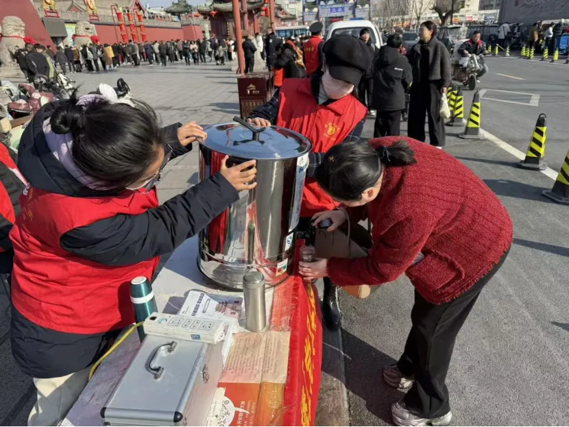 “您好,买票请往这边走”“需要热水吗?我们这边免费提供”……在开封府景区门前的志愿服务点,身穿红马甲的街道志愿者成为一道亮丽的风景线。他们为游客提供咨询引导、免费饮水、应急药品、物品寄存等服务,用热情和微笑温暖每一位游客。街道每日对志愿服务点人员到岗、服务规范进行督导检查,确保志愿服务“不断档”。针对网络舆情,完善三级监测机制,安排专人24小时关注社交媒体平台,及时回应游客关切,快速处置涉旅诉求,以高效服务赢得游客点赞。