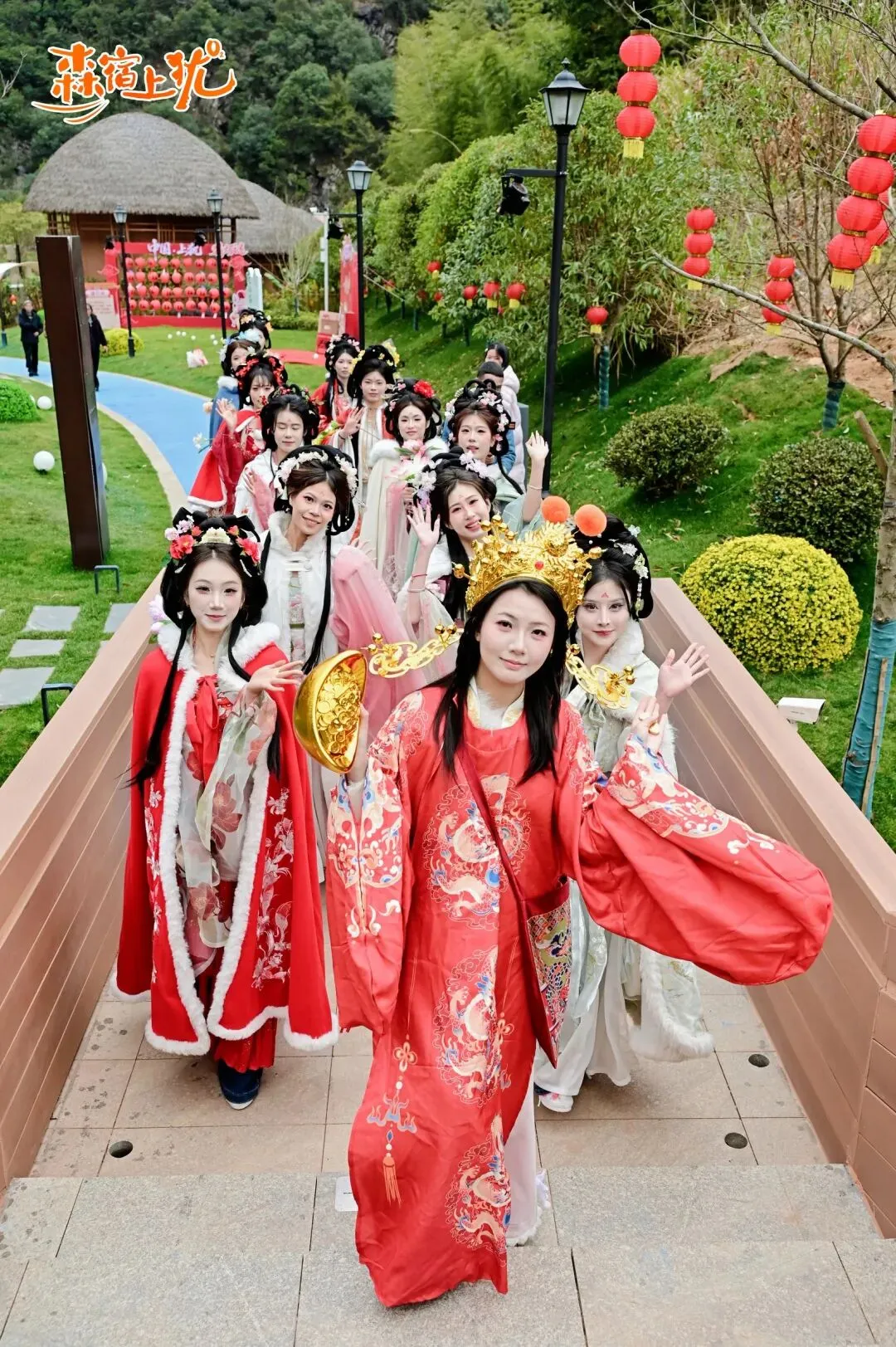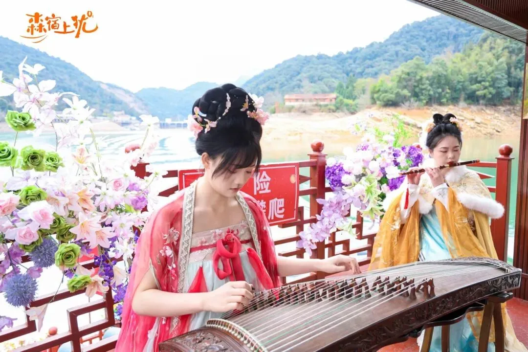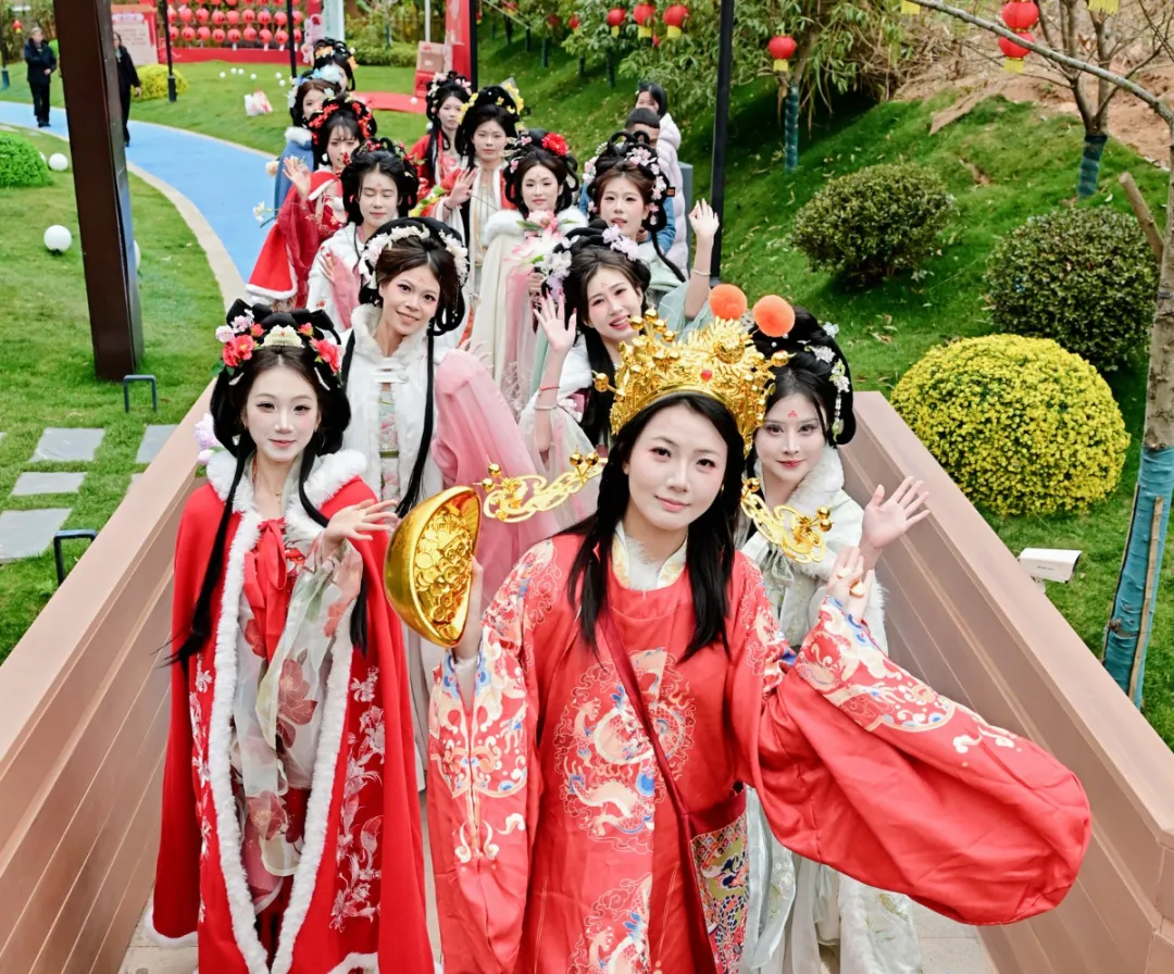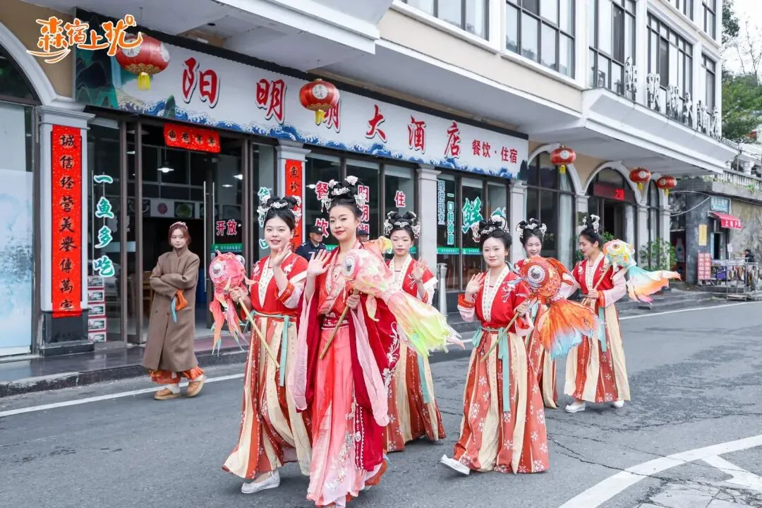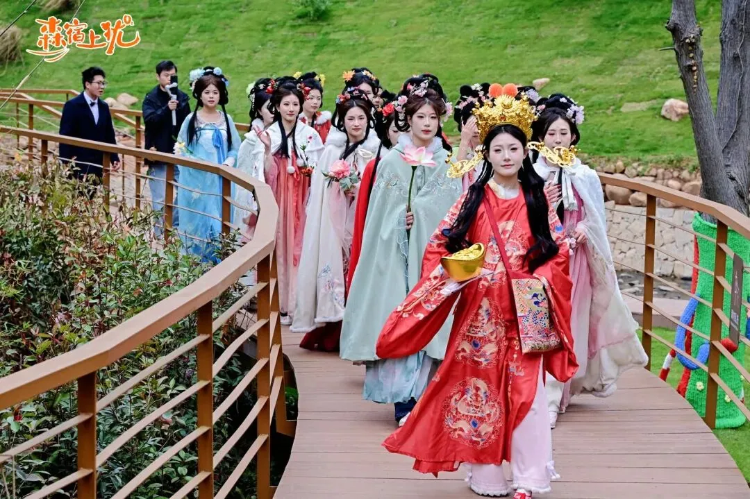 步入九曲·龙溪谷民宿的“森宿上犹·国风游园会”,便如悄然走进了水墨渲染的山水长卷。茶仙子盈盈领路,十二位“花神”衣袂飘飘、执花而行,宛若从古典诗画中款款走出,成就了一场“行走的东方浪漫美学盛宴”,引得游人频频驻足,拍照声与赞叹声不绝。