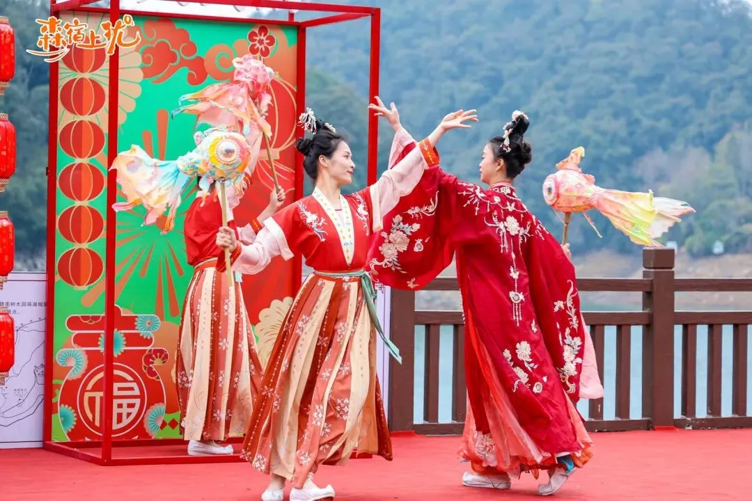 花船载着琵琶与二胡的乐声,缓缓划开碧波;非遗鱼灯舞灵动穿梭于长廊之下,千年“鱼火”跃动今春,祈福纳祥。