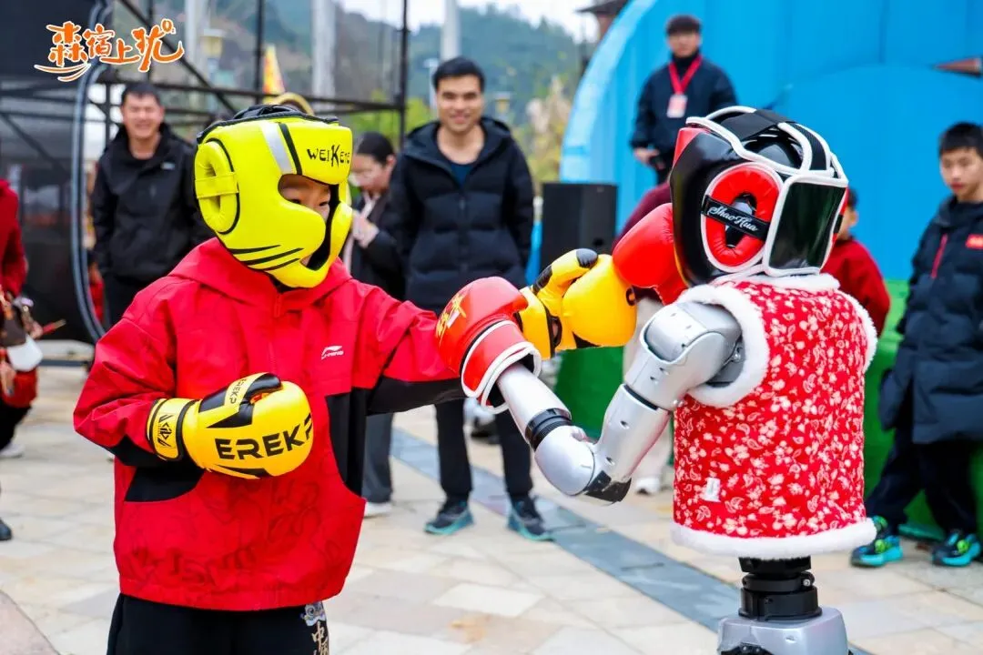 宇树人形机器人化身硬核舞者,回旋踢帅度拉满,机械wave精准卡点,每一个街舞动作都丝滑炫酷,科技动感与新春热情完美交融,引得观众纷纷驻足欢呼,拍照打卡。机甲明星“黑神话悟空”与“大黄蜂”霸气巡游,与游客击掌互动,再现经典名场面;机械小狗灵活穿梭,翻滚作揖,萌趣表演圈粉无数;而机器人格斗擂台上的紧张对决,更是碰撞出金属与智慧的激烈火花。