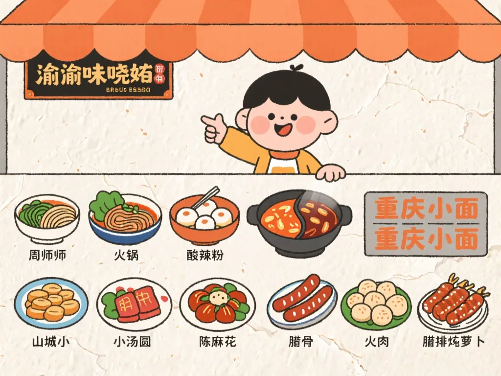 美食清单推荐了重庆的特色火锅、小吃及年俗菜肴。