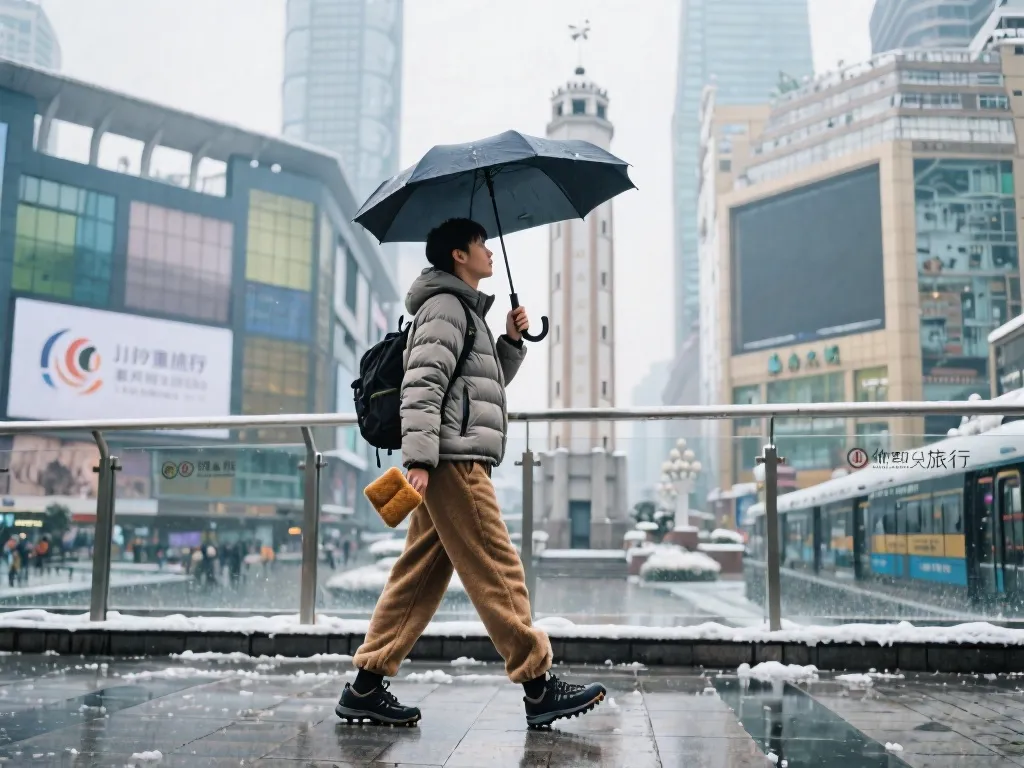 重庆冬季气候湿冷(气温约5-10℃),建议穿着薄款羽绒服、加绒裤及防滑运动鞋,并备好暖宝宝和雨伞。
