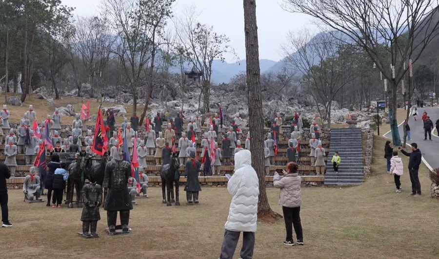 春节期间,双牌县精心推出“冠军城·双牌味 邀您过大年”系列文旅活动,业态丰富、亮点纷呈,吸引本地、周边县市及外省游客纷至沓来。在花千谷•月湖景区,排筏游、亲子游等项目备受青睐,游客乘筏赏景,尽享乡村慢生活与新春团圆之乐。作为核心热门景点的青龙岩景区人气爆棚,独特喀斯特地貌与石林秘境相映成趣,兵马俑艺术展、盛唐仙子不倒翁、醒狮高桩表演、童趣互动秀等活动轮番上演,传统民俗与新潮体验深度交融,让游客沉浸式感受浓郁年味。登山步道、观景平台、互动点位前游客络绎不绝,家庭游、亲子游、好友结伴游成为假期出游主流,游客们登高祈福、拍照留念,在自然美景与节日氛围中欢度马年新春。