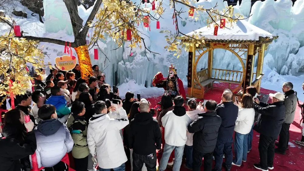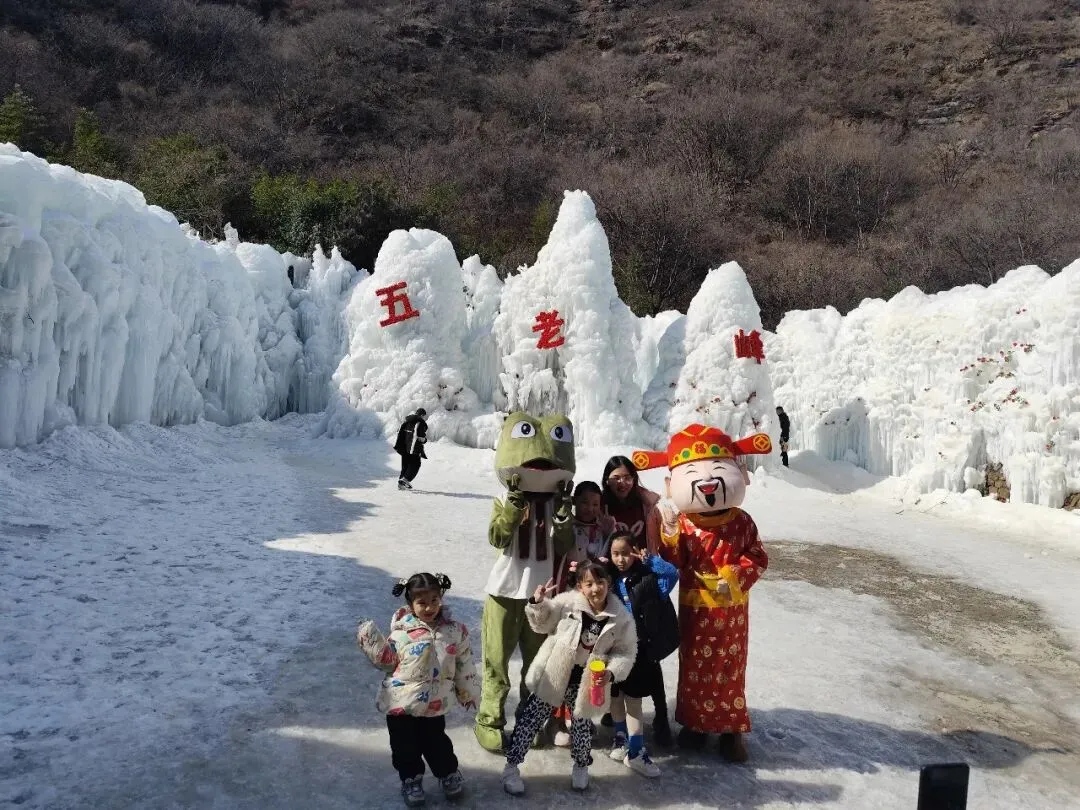 看七彩冰峰、冰封玫瑰,随手一拍就是大片;冰里冻着饮料,凿开有惊喜哦!来冰瀑旁偶遇变脸、吐火表演;与财神、功夫熊猫、浪浪山小妖怪来玩;去“我爱五老峰”冰面打卡、来终点平台拿小礼物。