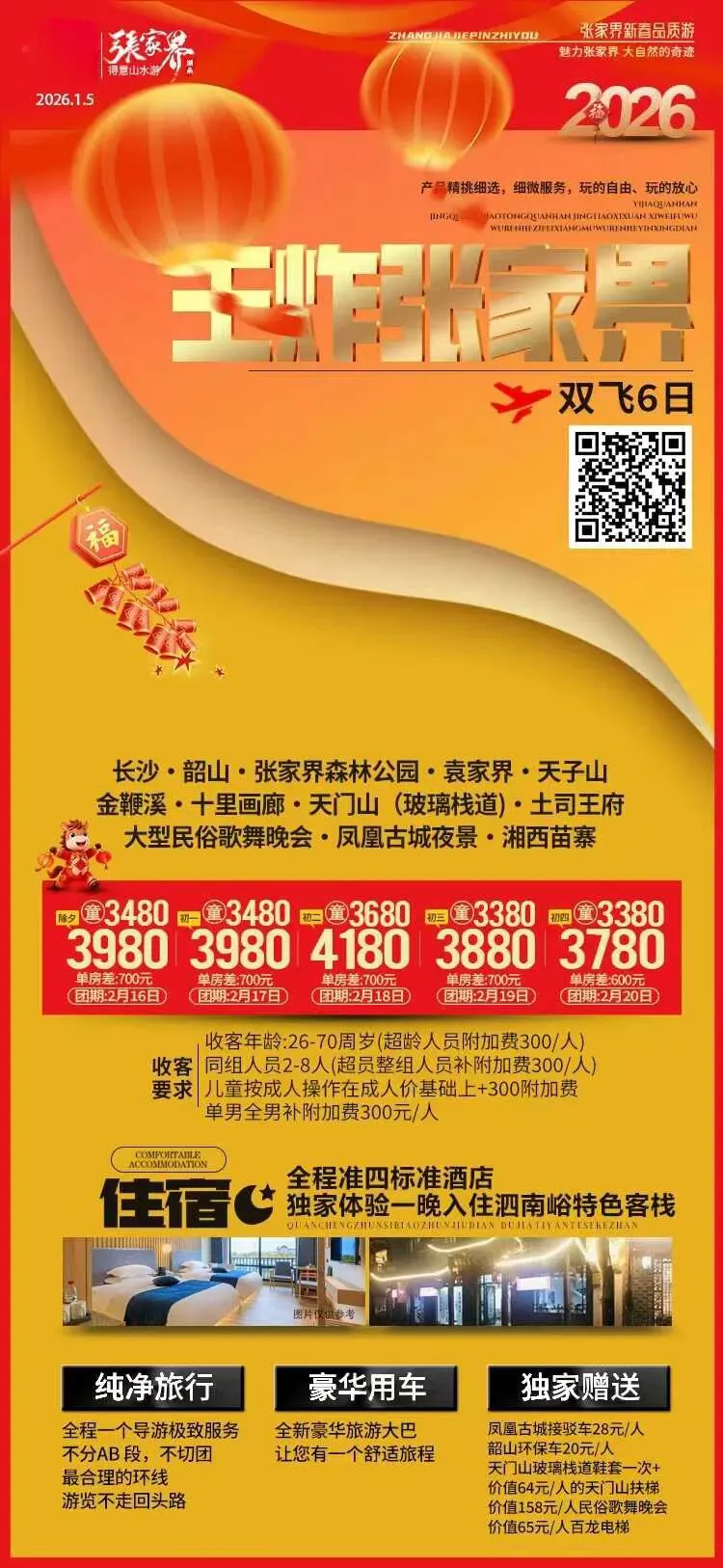 您现在的位置是:首页 > 国内旅游目的推荐 > 正文 国内旅游目的推荐 青岛出发:张家界淡旺季旅游价格差这么多! admin2026年02月18日 22:34:38国内旅游目的推荐9 青岛出发:张家界淡旺季旅游价格差这么多!这是城阳事的第1523篇推荐图文【更多线路请咨询城阳事旅游小助理】正在进行的相亲活动Ongoing Single Dating Activities《扫码报名 立即脱单》点击下方小程序查看更多单身信息 转载请说明来源于"旅荐网",部分内容转载自网络,如有侵权请联系qlwl@foxmail.com删除 本文地址:https://www.15386.cn/post/113575.html 上一篇 舞台表演、体验民俗,稻田记忆景区新春上新~ 下一篇 大年初二南京老门东景区实况 相关文章 加拿大旅行计划、多伦多|尼亚加拉大瀑布|蒙特利尔|卡尔加里|班夫国家公园|露易丝湖|贾斯珀国家公园|库特尼国家公园|温哥华|维多利亚 2026年,鼓浪屿旅行攻略:哪家旅行社电话咨询最便捷? 2026年六安旅游攻略:揭秘旅行预算TOP10,你准备好花多 带77岁爷爷北京旅游不费腿攻略来啦精华7天 带77岁爷爷北京旅游不费腿攻略来啦精华7天 2026年桂林旅游攻略:揭秘必玩TOP10景点,错过就亏大了 2026年婺源旅游攻略:哪家旅行社电话咨询更便捷?TOP5推 连云港 特种兵一日游旅游攻略! 常德本地人推荐超全两天一晚旅游攻略 北海市旅行新攻略!小众场馆与特色美食,惊艳所有游客 发表评论 取消回复 评论列表 这篇文章还没有收到评论,赶紧来抢沙发吧~