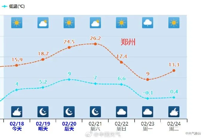 2月21日(星期六):晴天间多云,偏西风3-4级,阵风6-7级 8~26℃
