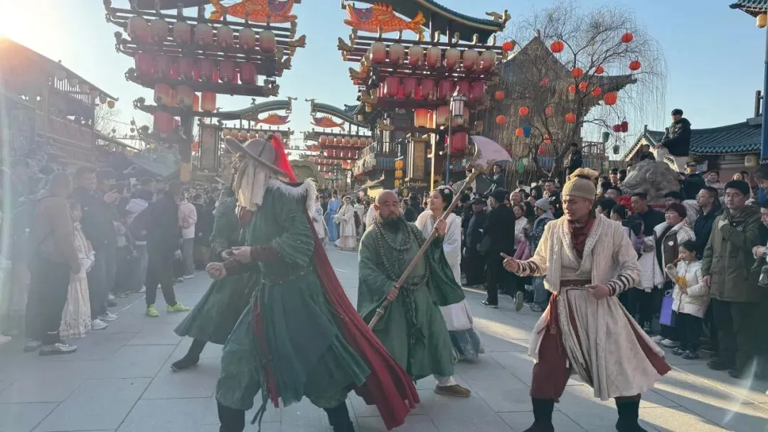 飞檐翘角映着暖阳,青石板路承载着往来游人的步履,身着华服的“宋人”闲庭信步,市井小贩的吆喝声清脆悠长,将千年大宋的烟火气晕染在每一寸时光里。