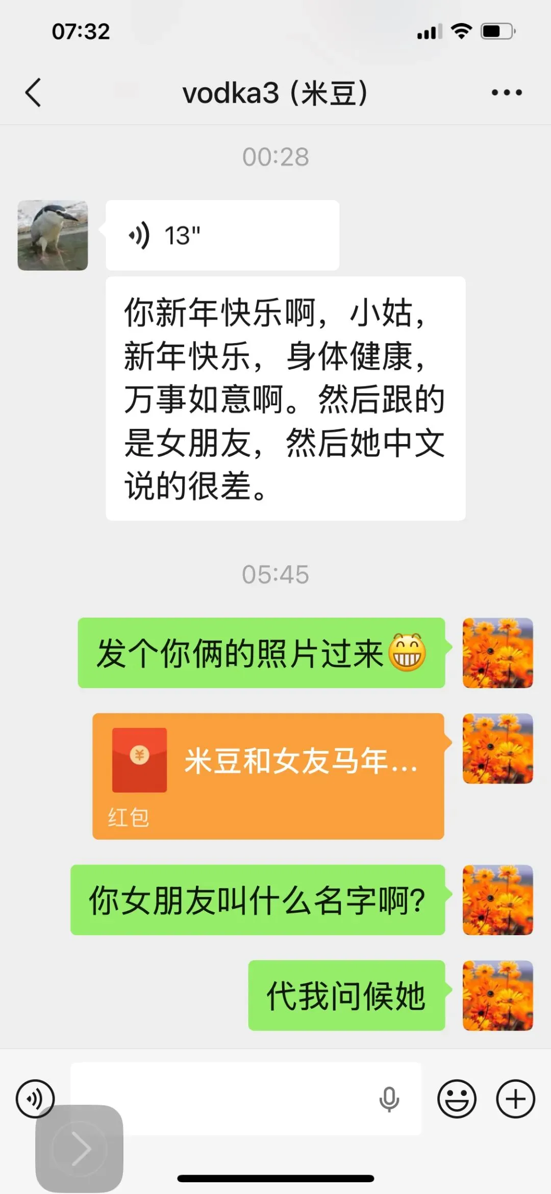 米豆和他的法国人女朋友(第二个新年快乐是她说的😀)大年初一从法国给我拜年啦,开心😃 一转眼他都上大学有女朋友啦,真让人高兴😊