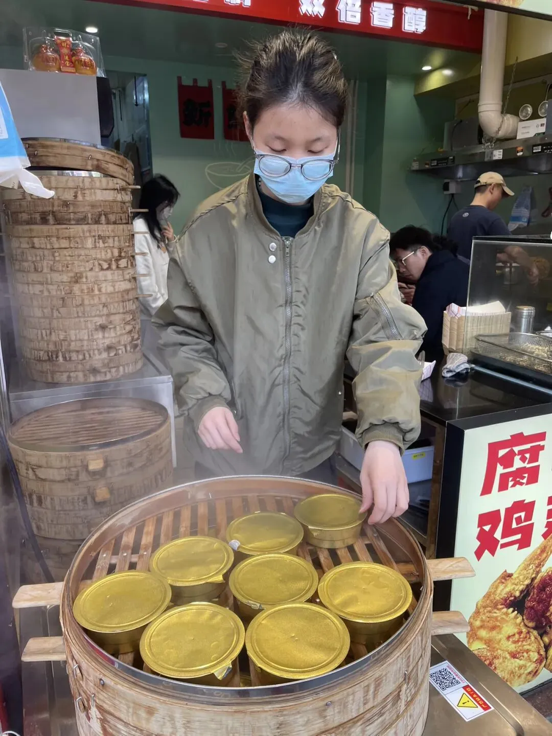 左边是绿豆沙是甜的,右边是咸蛋黄。肉蛮多的,吃完就饱了。坐我边上的是一对老夫妻,和女儿一家开车从洛阳过来的。