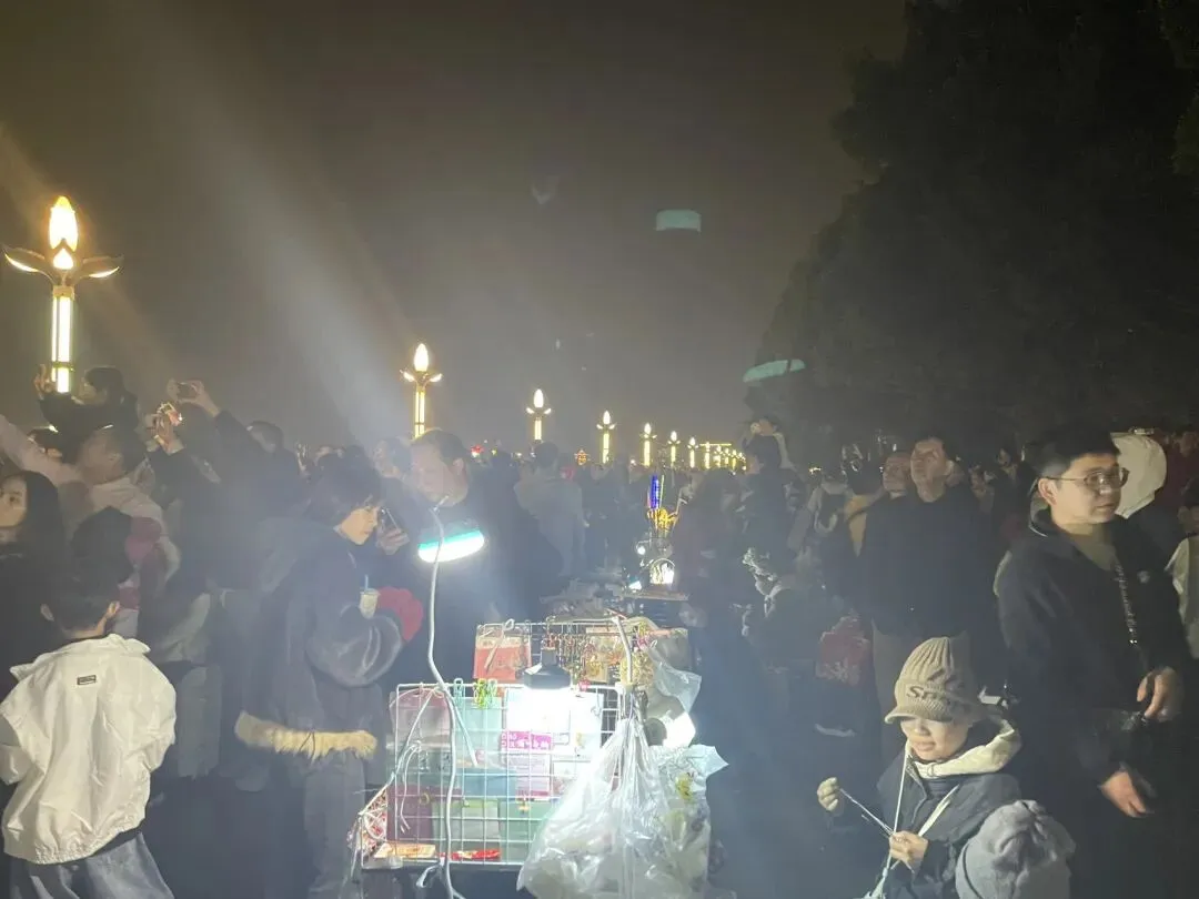 长长的岸边挤满了人。我们年三十晚上去看是多么英明😃