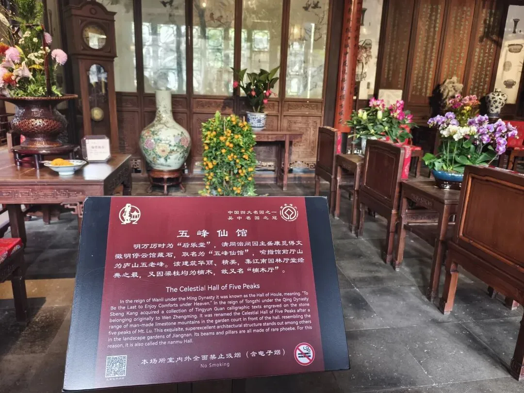 冠云峰是第二宝,高6.5米,苏州园林最高太湖石,集瘦皱漏透,花石纲遗物。