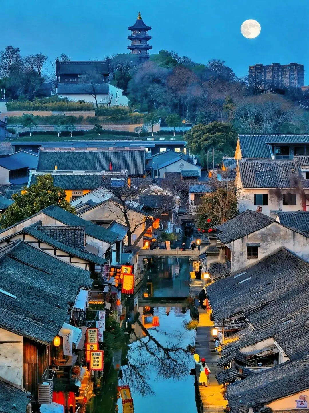 傍晚漫步仓桥直街,青石板路与白墙黛瓦相映,沿街商铺与小吃摊位齐全,红灯笼亮起后氛围感十足,适合漫步拍照与品尝小吃。