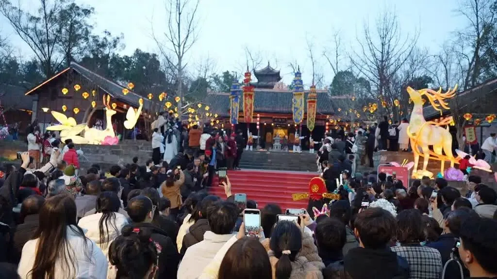 据景区有关负责人介绍,今年的活动采用了“白天游园+晚间夜游”的形式,把非遗文化和本土文化相融合,让游客在不同时段感受景区的不同魅力。白天,游客可以参与对诗、猜灯谜等传统民俗互动,体验浓厚的年味。随着夜幕降临,千盏花灯点亮故城,将历史与现代完美结合,营造出如梦似幻的视觉盛宴;同时,景区还推出了相如断案、王婆说媒、比武招亲等情景演艺节目以及非遗民俗表演。街头杂耍、杂技顶幡、火壶秀、打铁花等,都成为了吸引游客驻足的亮点,让游客切身感受与白天截然不同的氛围。