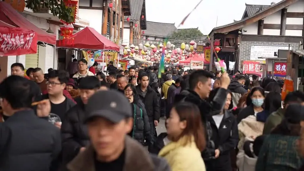 据景区有关负责人介绍,今年的活动采用了“白天游园+晚间夜游”的形式,把非遗文化和本土文化相融合,让游客在不同时段感受景区的不同魅力。白天,游客可以参与对诗、猜灯谜等传统民俗互动,体验浓厚的年味。随着夜幕降临,千盏花灯点亮故城,将历史与现代完美结合,营造出如梦似幻的视觉盛宴;同时,景区还推出了相如断案、王婆说媒、比武招亲等情景演艺节目以及非遗民俗表演。街头杂耍、杂技顶幡、火壶秀、打铁花等,都成为了吸引游客驻足的亮点,让游客切身感受与白天截然不同的氛围。