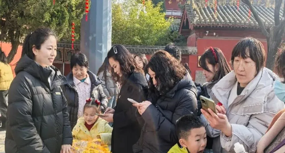 普救寺景区里,景区还尽心地为游客准备了特色伴手小礼品,在游客游玩间隙赠送给游客。礼品虽小,却承载着景区的新春祝福与满满心意,为游客的春节之旅留下了一份独特而美好的纪念。