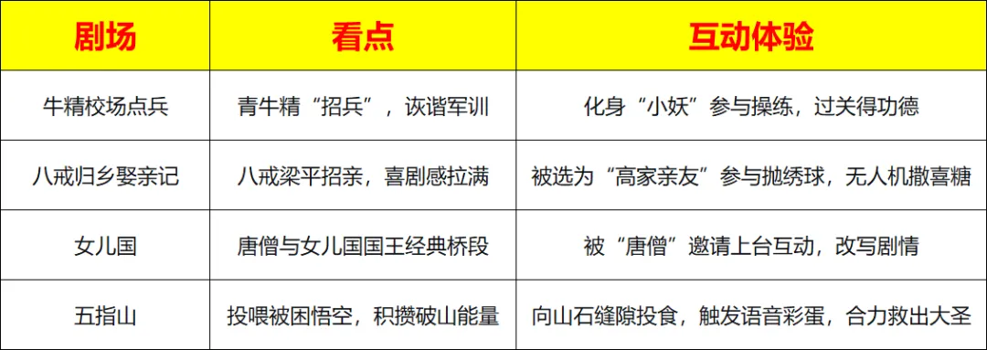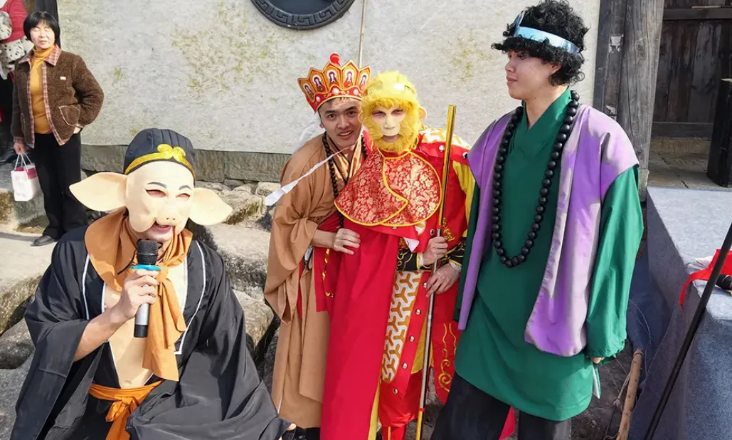 “登山即取经,过寨即西行”——整个古寨就是一个巨大的沉浸式剧场!四大主题剧场+十五处互动游戏,让你从“游客”变身“取经人”,靠实力赚“功德”(银票),最后兑换“真经”(礼品)。