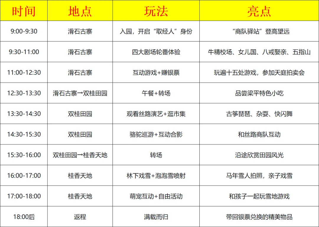 春节七天乐·每日时间表