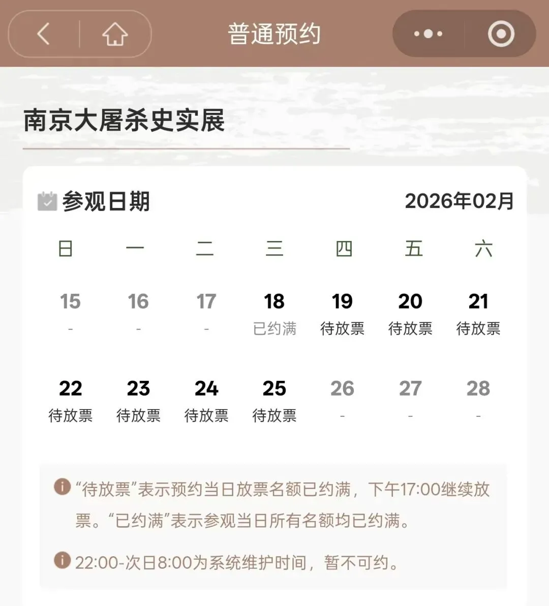 南京多个景区(场馆)通告:别来,已约满今天(2月18日) 南京总统府景区发布通告称 2月18日、19日、20日门票 已售罄
