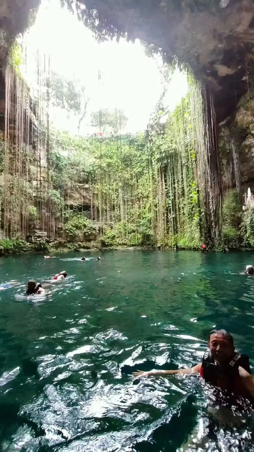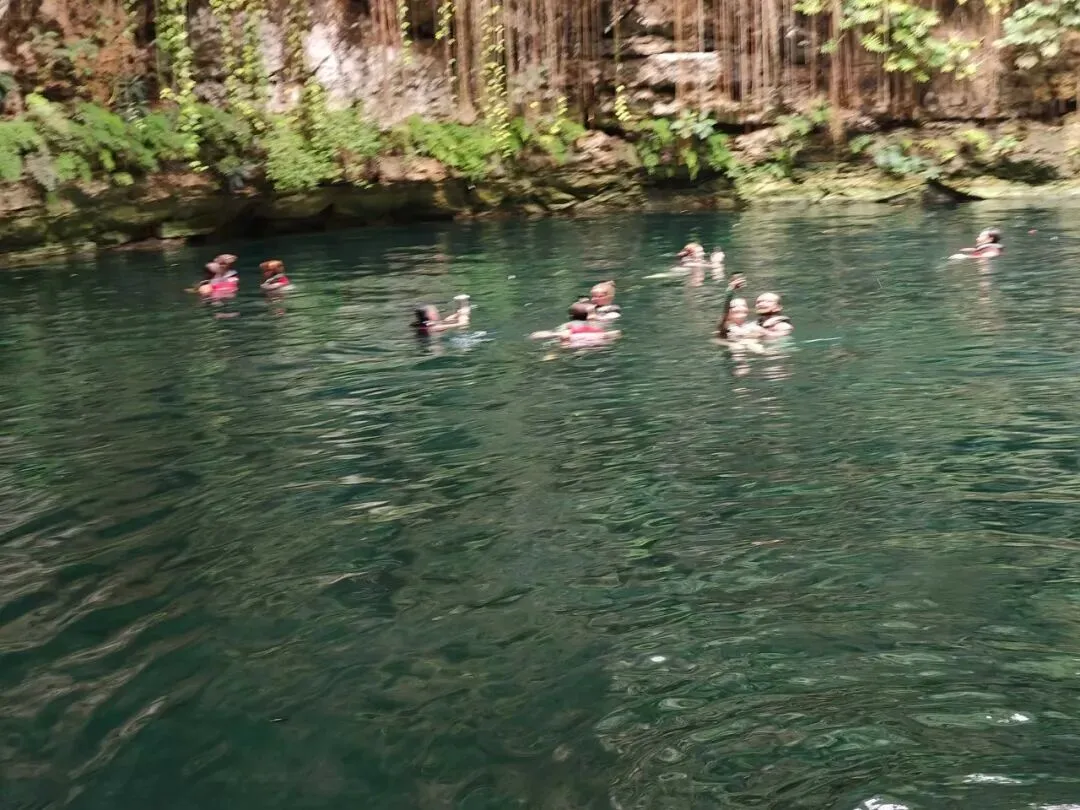 Ikkil天坑位于墨西哥尤卡坦半岛,距离奇琴伊察古城不远,其实就是天坑🕳️,其碧绿清澈的水池和周围茂密的藤蔓、植被使得这里仿佛一个森林中的天然游泳池,可以游泳,规定要穿救生衣才能下水。墨西哥自助餐,特点就是你只能示意要什么,必须由服务员给你食物,竟然没有一味是辣椒菜色,枉自称辣椒世界闻名!还好有[啤酒],口感不错。