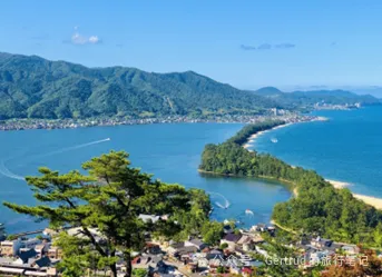 回到JR西舞鹤站,先别急着返回京都市区,让我们继续往西,搭乘第三部门铁道公司京都丹后铁道运营的列车,前往下一个目的地宫津地区。这里最著名的景点便要数日本三景之一的天桥立了,这是一处位于海中的沙洲,在退潮时会形成一条天然的道路,牢牢封住宫津湾,这让古代的日本民众对这一自然奇观啧啧称奇,他们便在沙洲上修建道路,设置神社,种上参天的松树,形成了独属于这里的自然与文化交融之美。