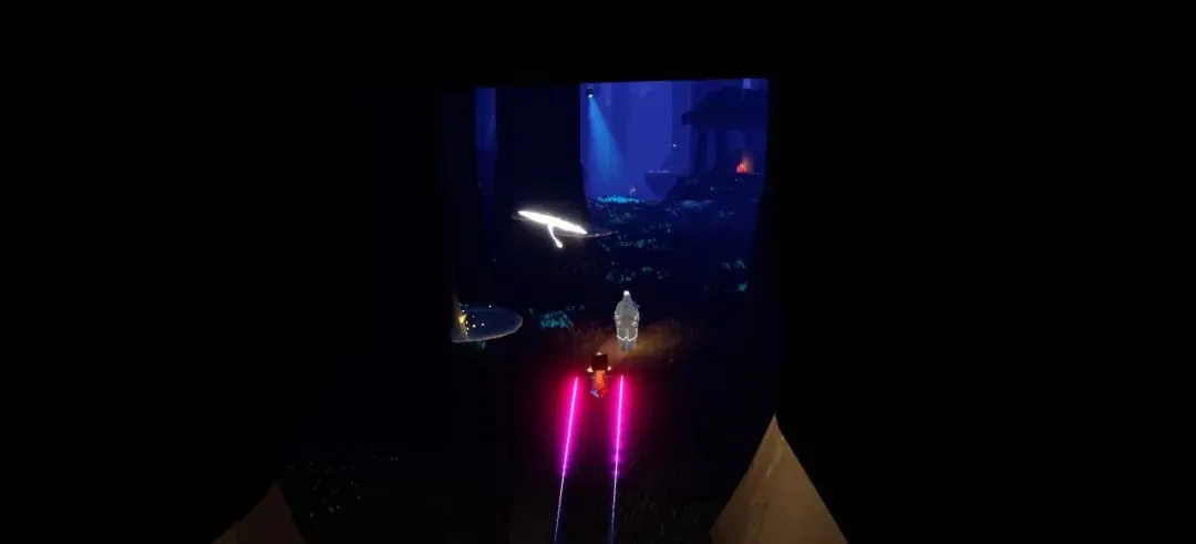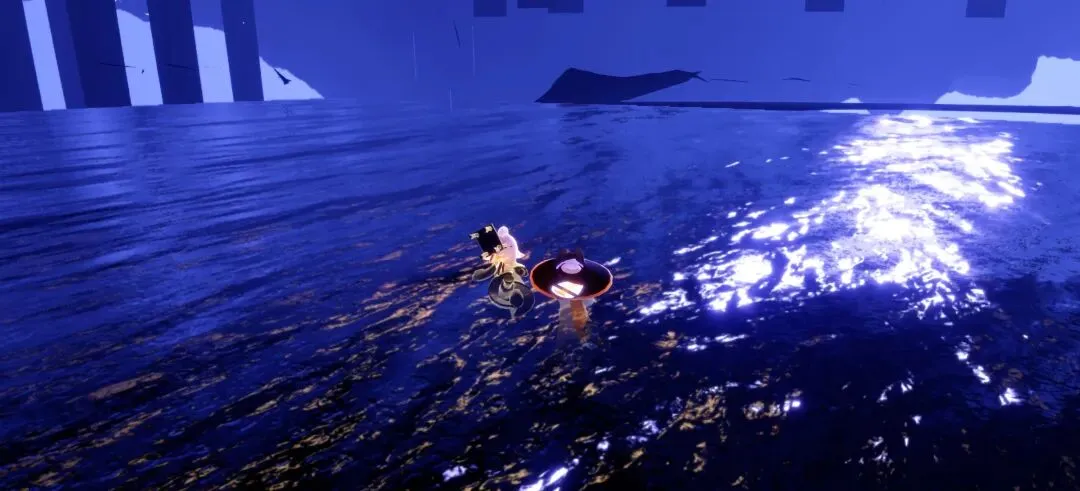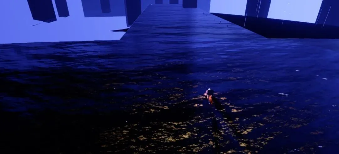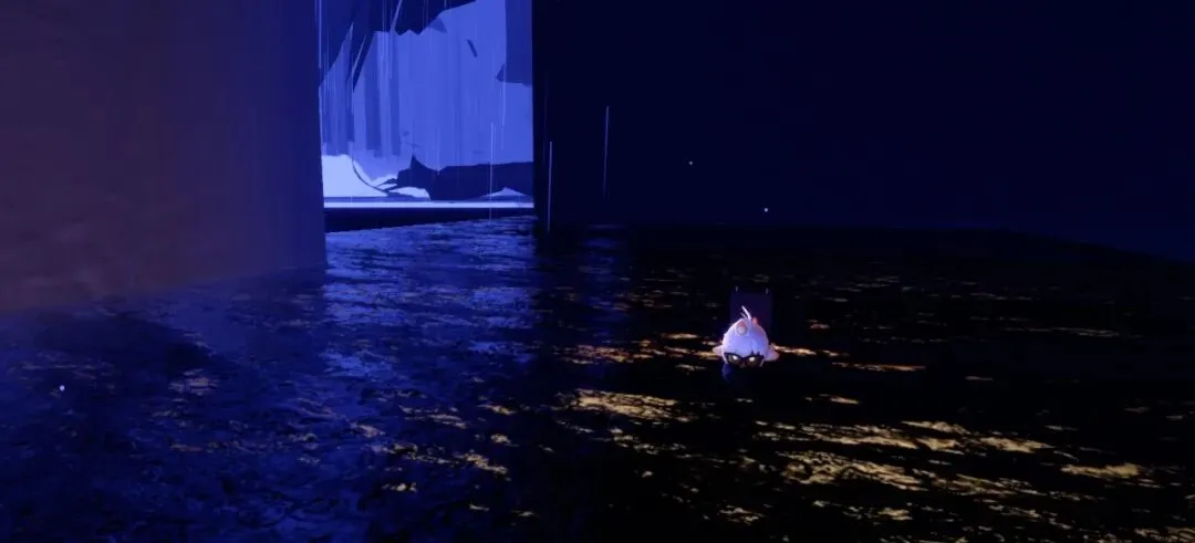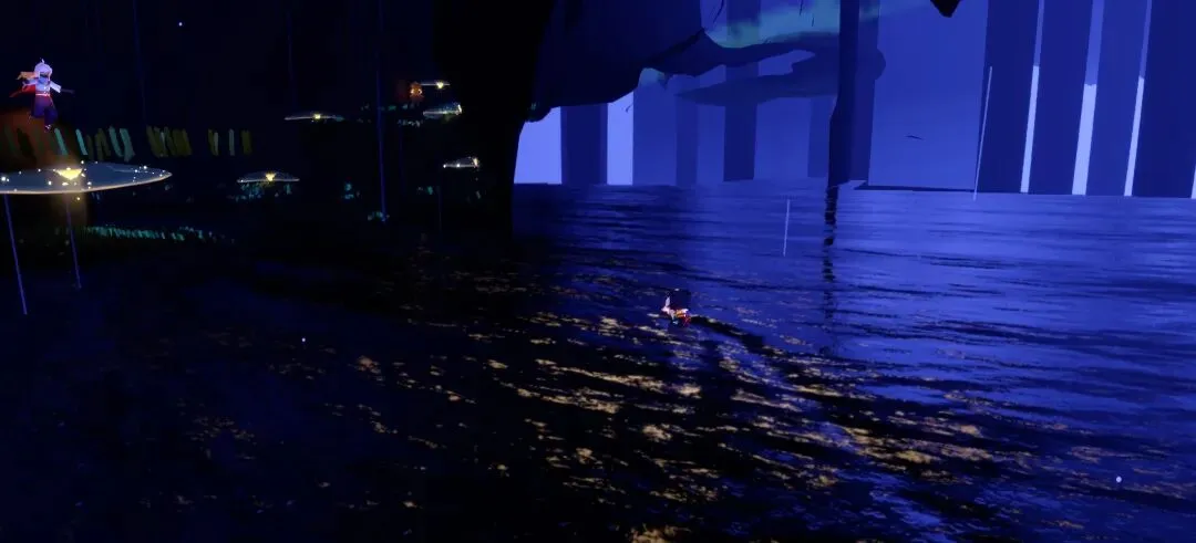 然后咱出来之后就是在一片湖面上。(这里咱千万不可以潜水,不然就掉下去了,摁,触底传送回来就不算在任务空间里了,需要回去星盘传送好友过来,或者孤狼重走一遍前边流程。