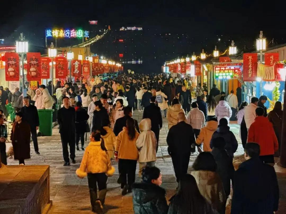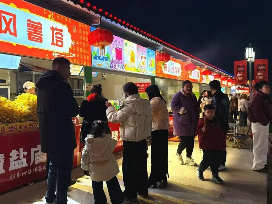 当白日的喧嚣褪去,夜幕降临,河东池盐文化博览园便换上了另一副绝美的容颜。如果说白天的庙会是热闹的序曲,那么夜晚的博览园,才是春节真正的高潮!