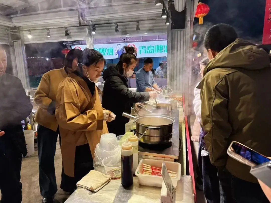 一入园,热闹的盬盐庙会便将年味拉满。非遗文创街的灯笼高高挂起,特色美食的香气扑鼻而来,年货市集的摊位前人头攒动,传统手工艺品、风味小吃一应俱全,每一处都洋溢着热气腾腾的市井烟火。热度不减的“南墙”打卡点前,依旧有不少游客驻足留影,定格新春的美好瞬间。